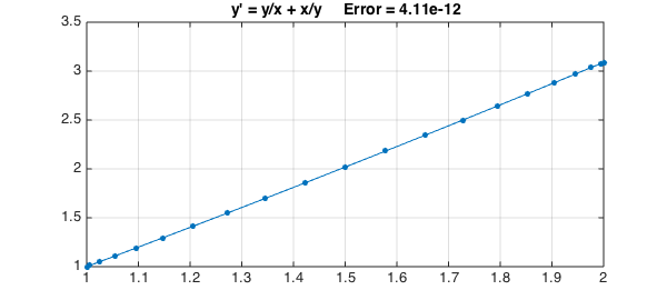 title(sprintf('y'' = y/x + x/y Error = %6.2e',err),FS,14)
